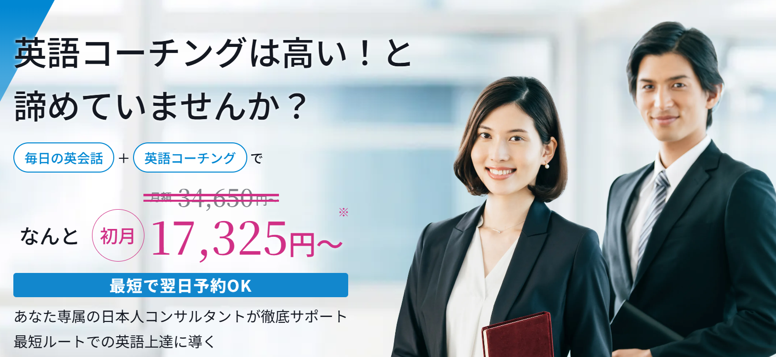 通常の英会話レッスンに加え、専属コンサルタントによるコーチングを組み合わせたハイブリッド型サービスです。
