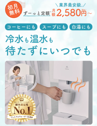 水道水を注ぐだけで、おいしいお水がいつでも飲み放題。月額定額制で、コスパにも優れています。