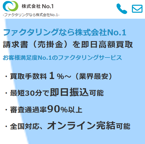 | 商品名 | No.1ファクタリングサービス(株式会社No.1) |